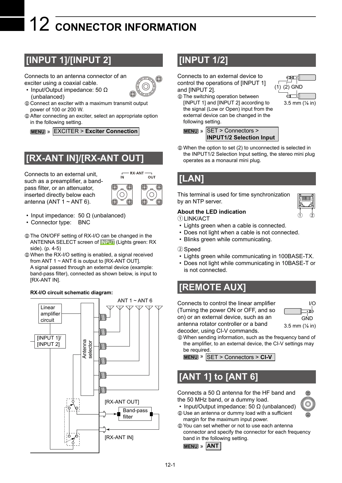 from ANT 1 ~ ANT 6 is output to [RX-ANT OUT].