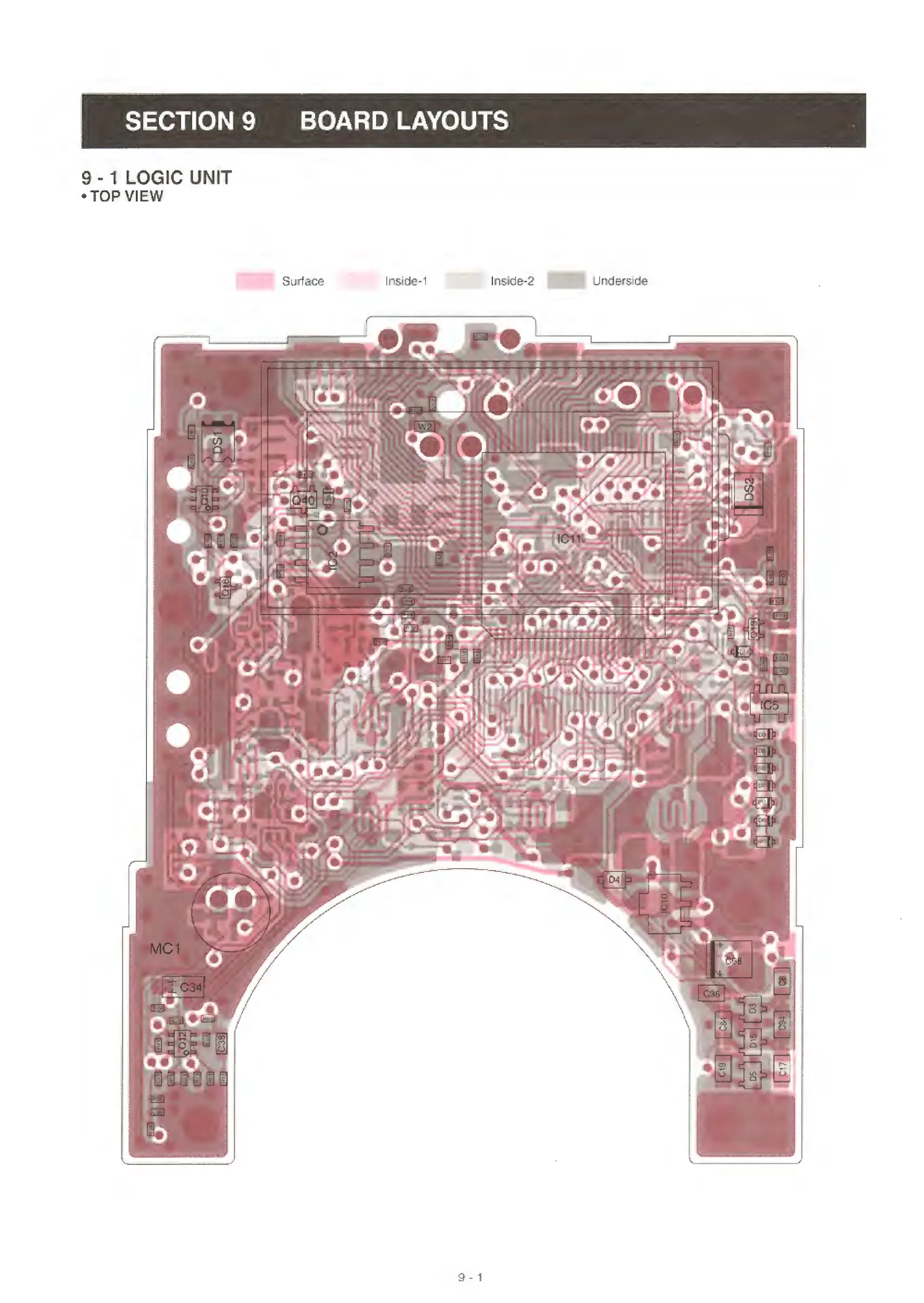Icom IC-Q7E - SECTION 9 BOARD LAYOUTS; Logic Unit Top View Layout