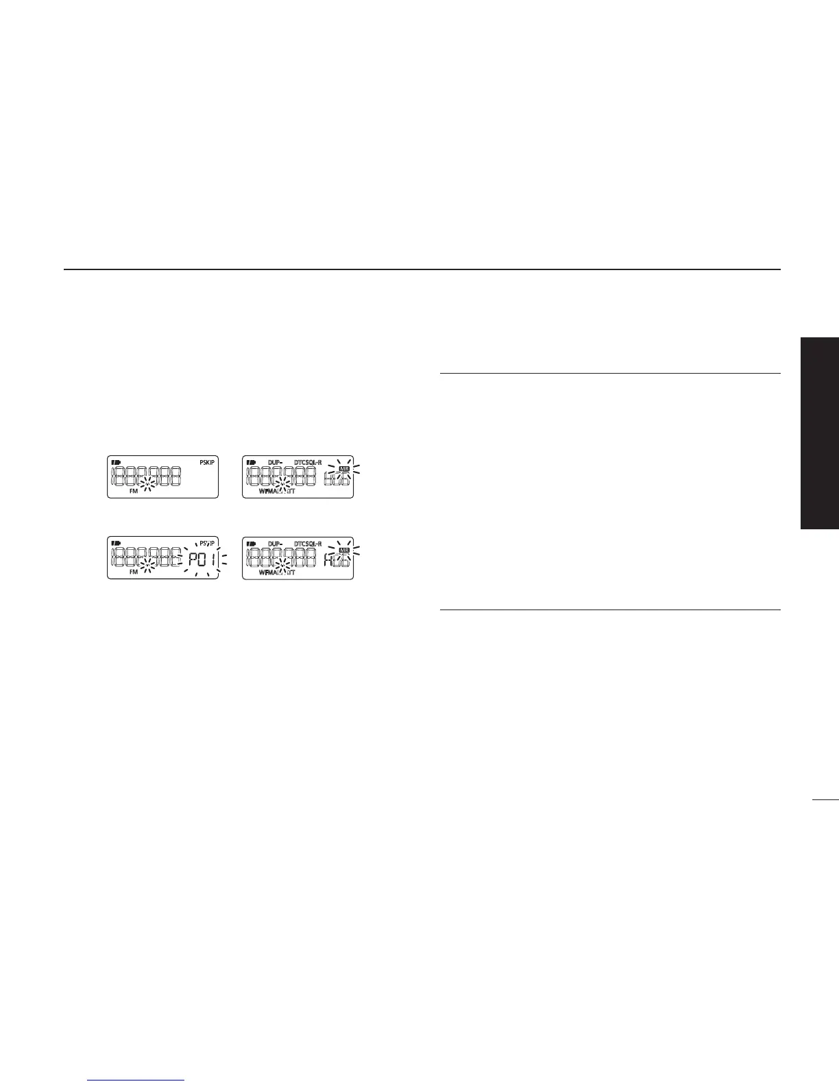 01A/01B: Selects “PROG 01” to scan between frequencies
