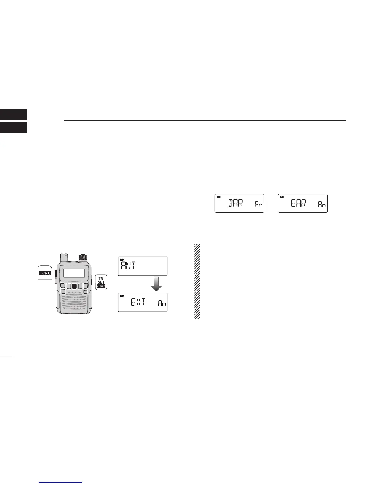 • “ANT” disappears after 1 second and “EXT” (default) and “An”
