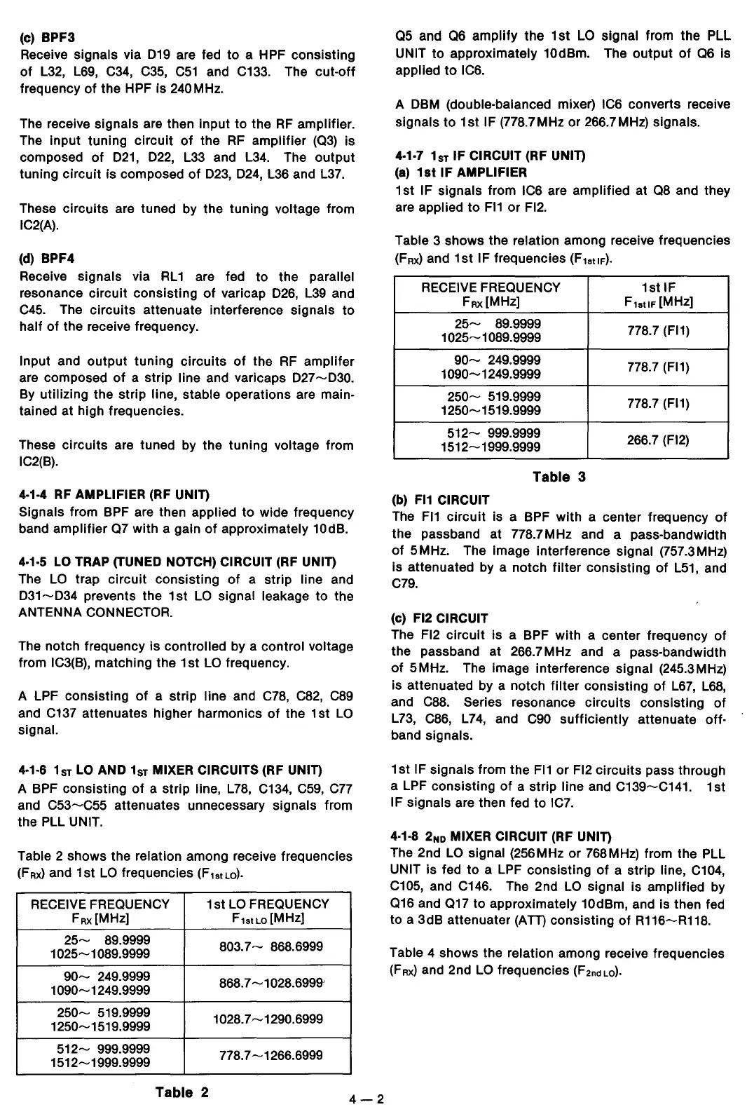 4 shows the relation among receive frequencies