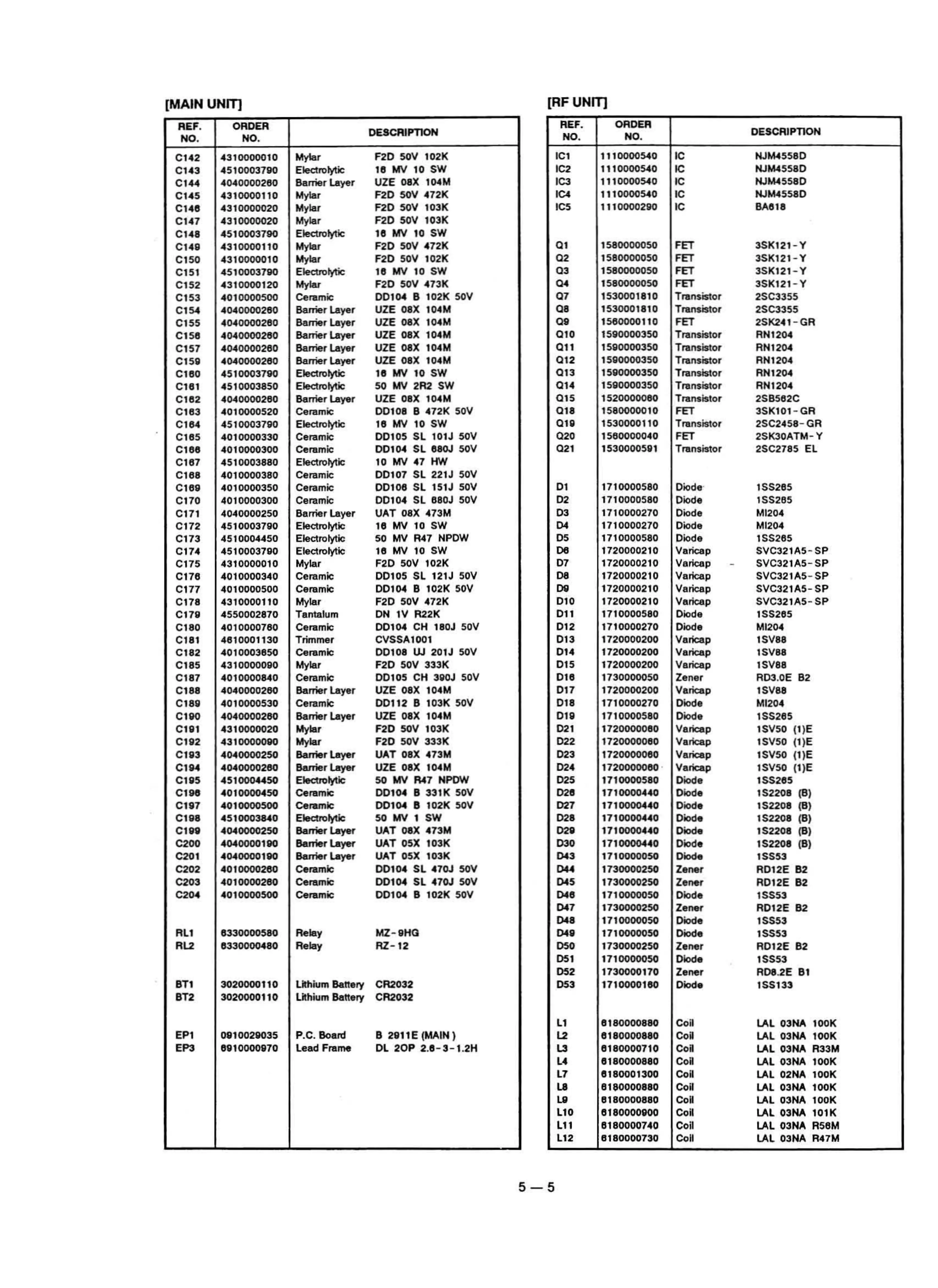 Icom IC-R7100 - [RF UNIT] PARTS LIST