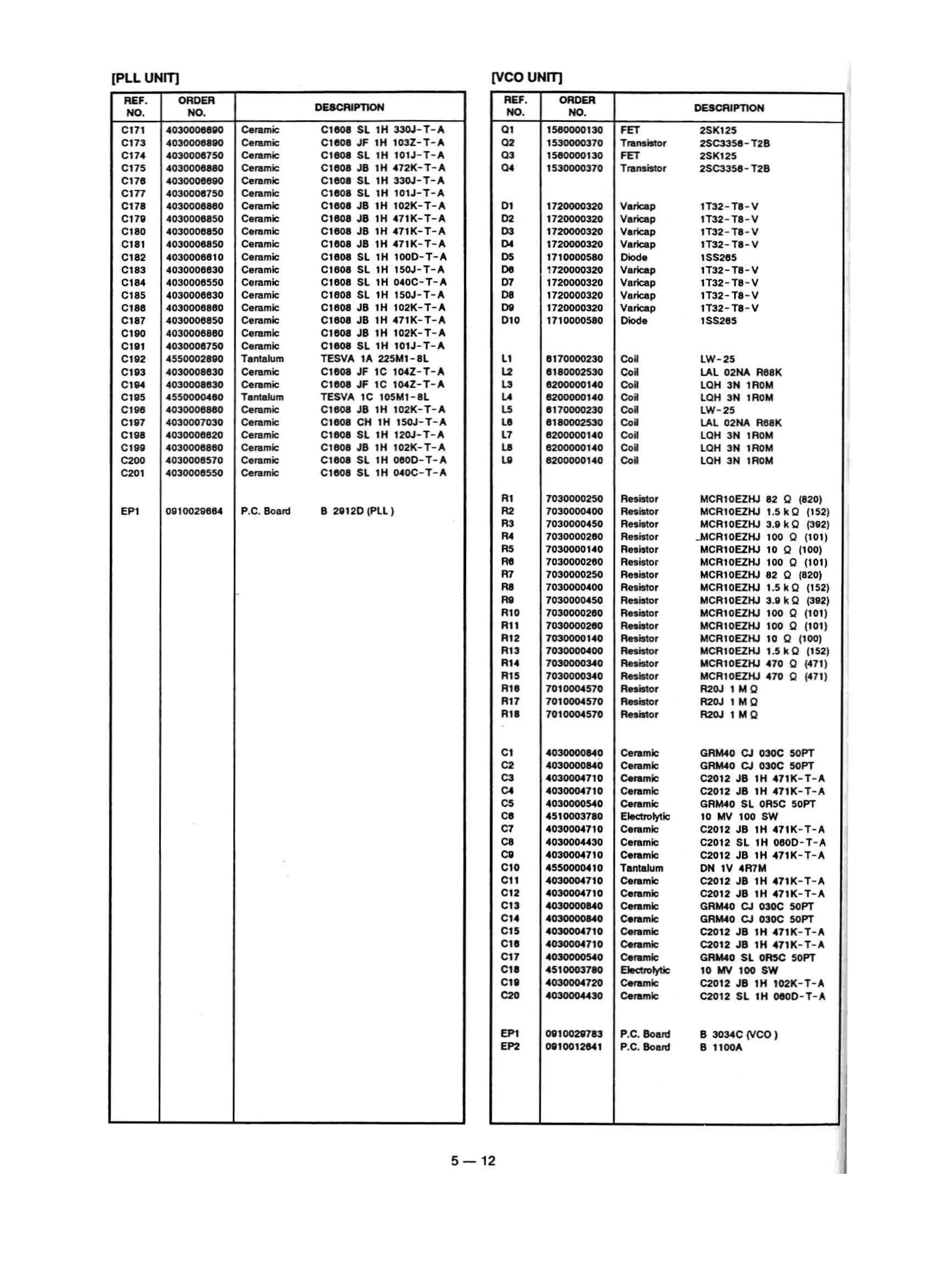 Icom IC-R7100 - [VCO UNIT] PARTS LIST
