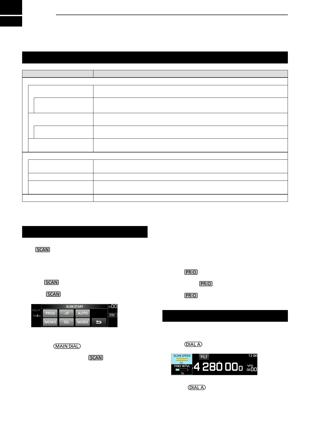 Repeatedly scans all or one of 9 Select Memory channels. (p.9-7)