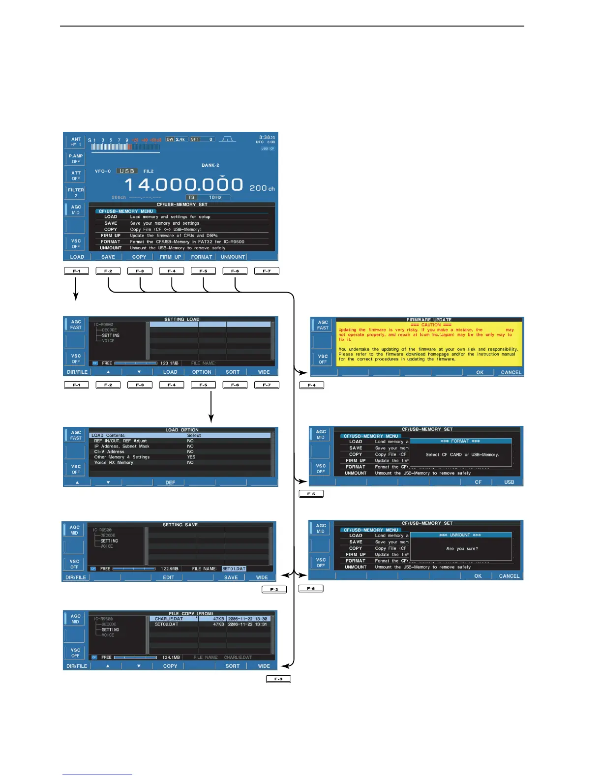 Icom IC-R9500 - CF Card;Usb-Memory Set Menu; D CF;USB-Memory Set Screen Arrangement