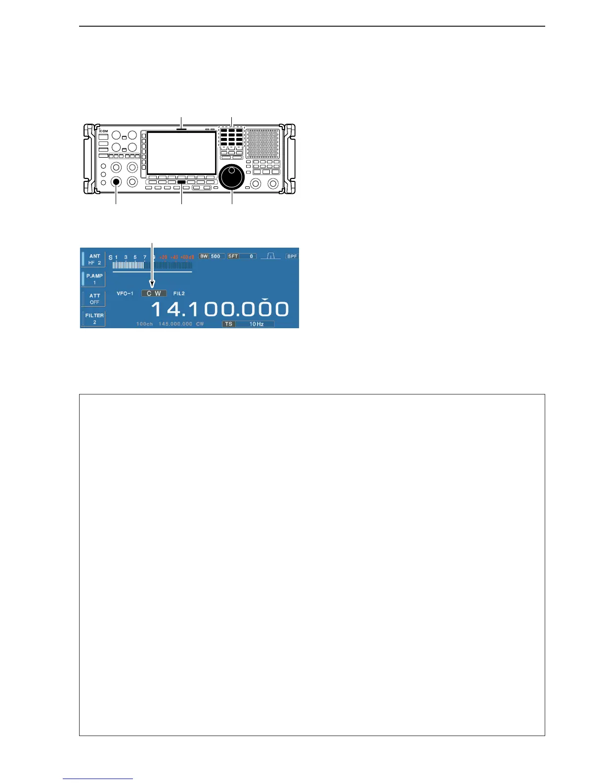 • After CW mode is selected, push and hold [SSB/CW] for