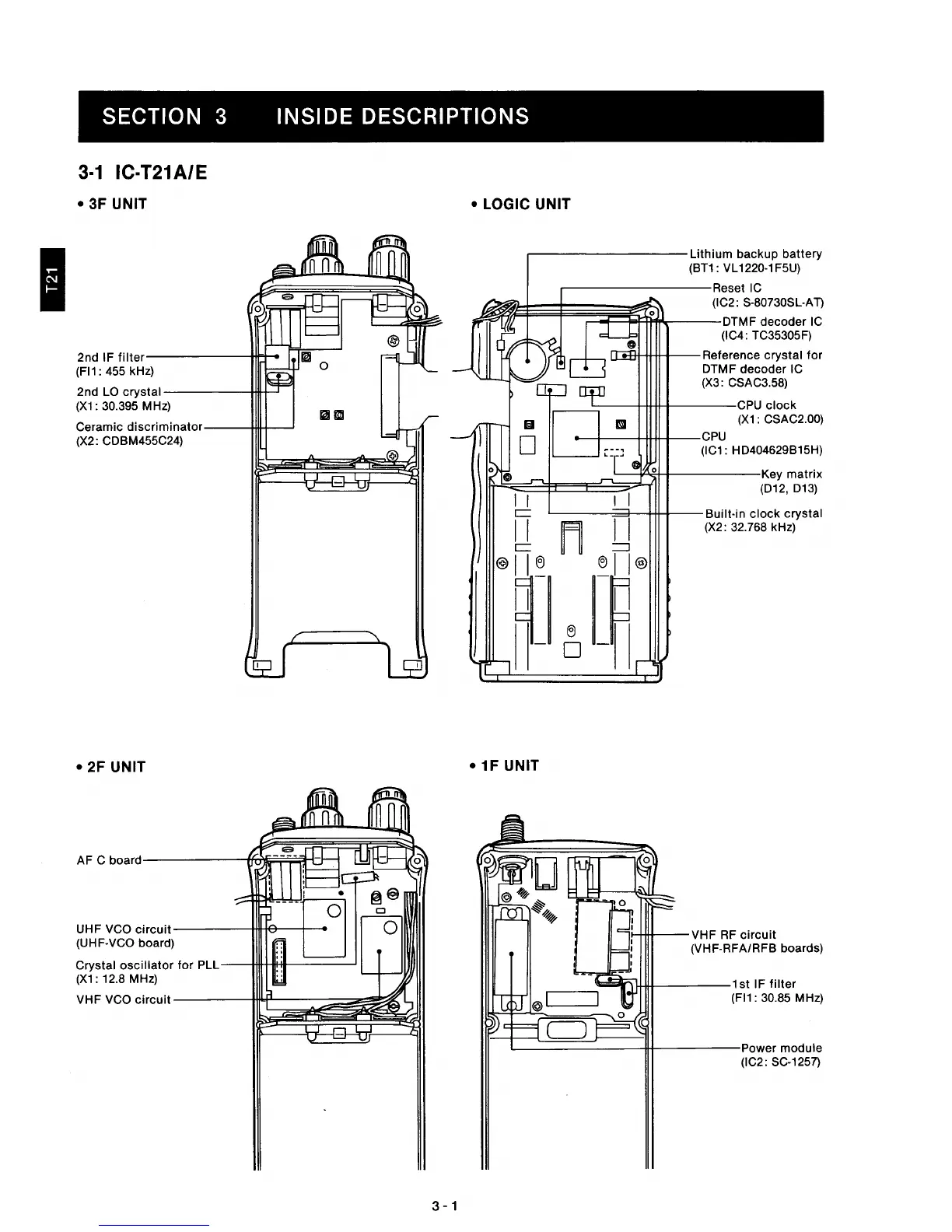 Icom IC-T21A - Section 3: Inside Descriptions of Units; 3-1 IC-T21 A;E Component Layout