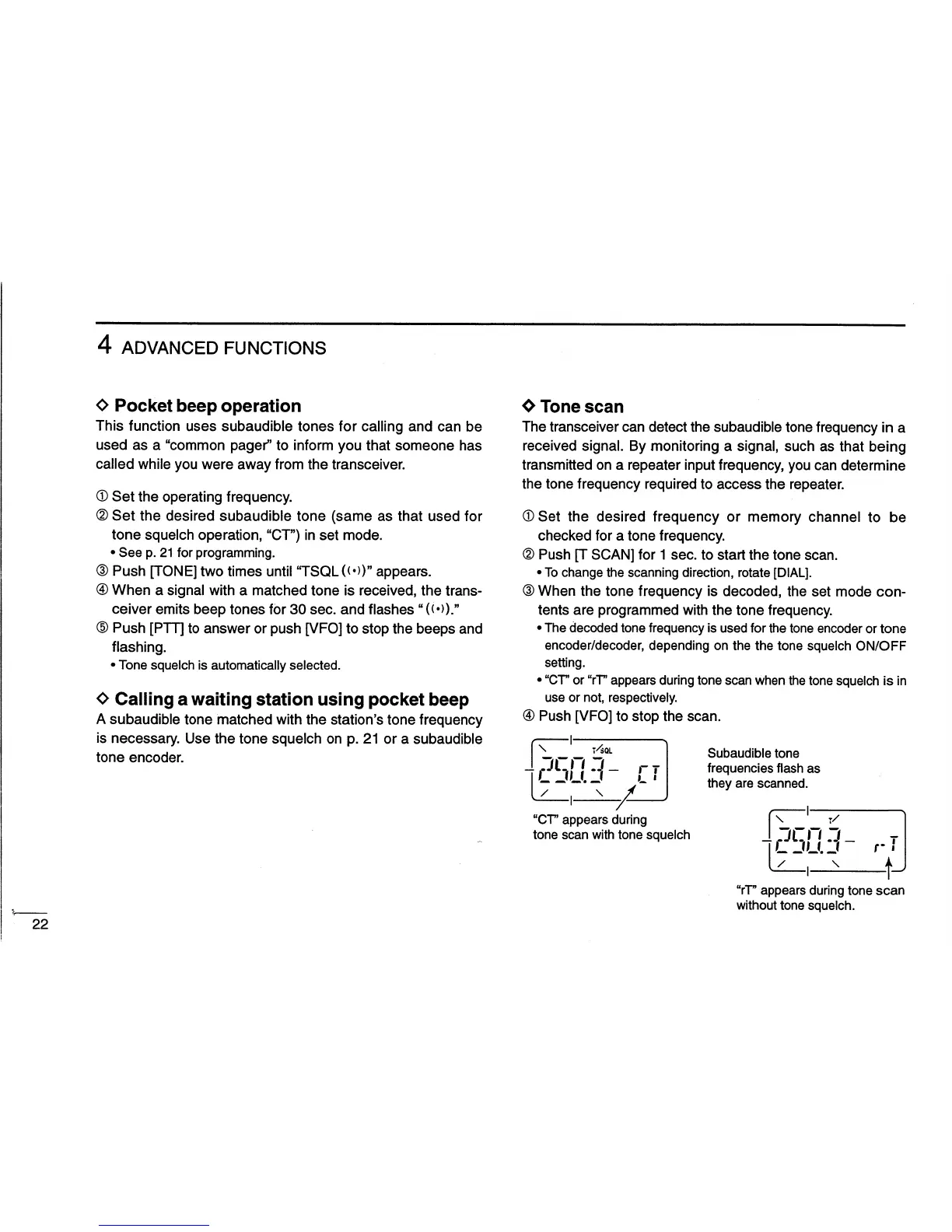 Icom IC-T7A - Pocket Beep Operation; Calling a Waiting Station Using Pocket Beep; Tone Scan