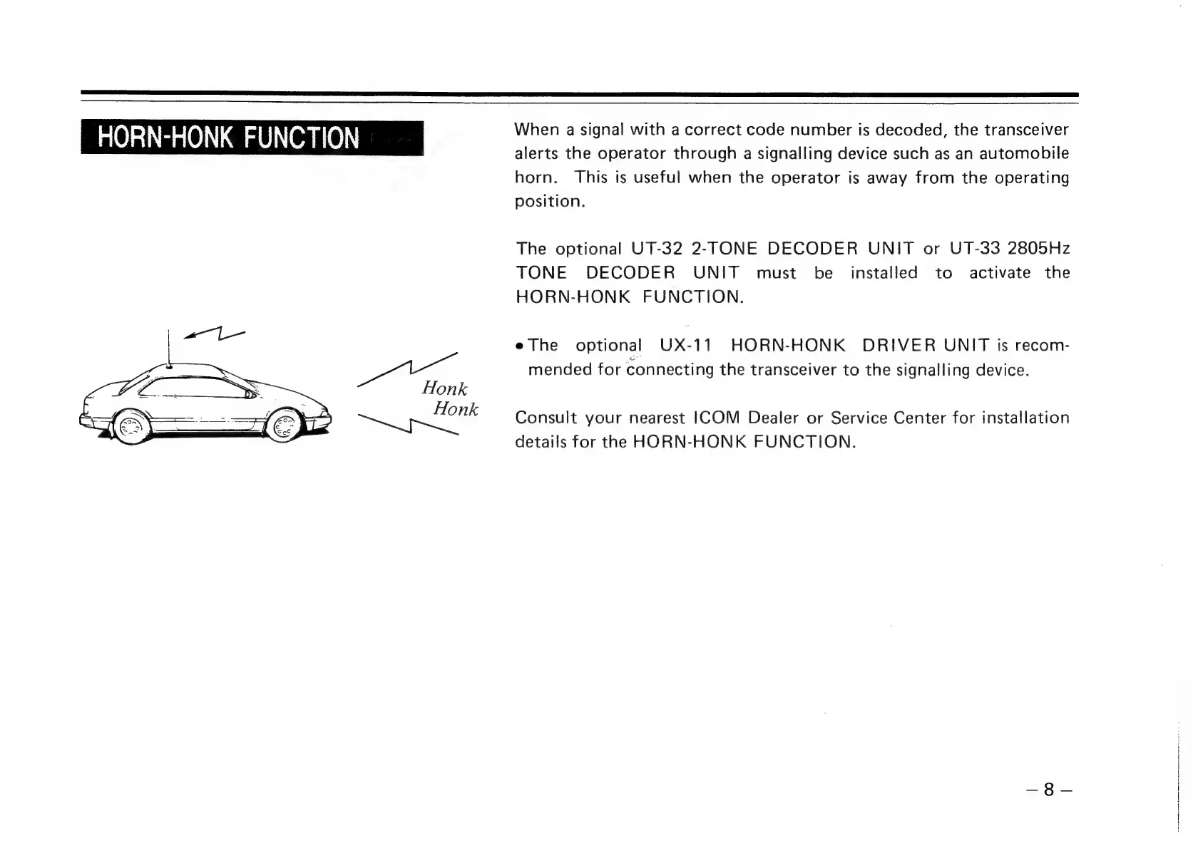 Icom IC-U200 - HORN-HONK FUNCTION