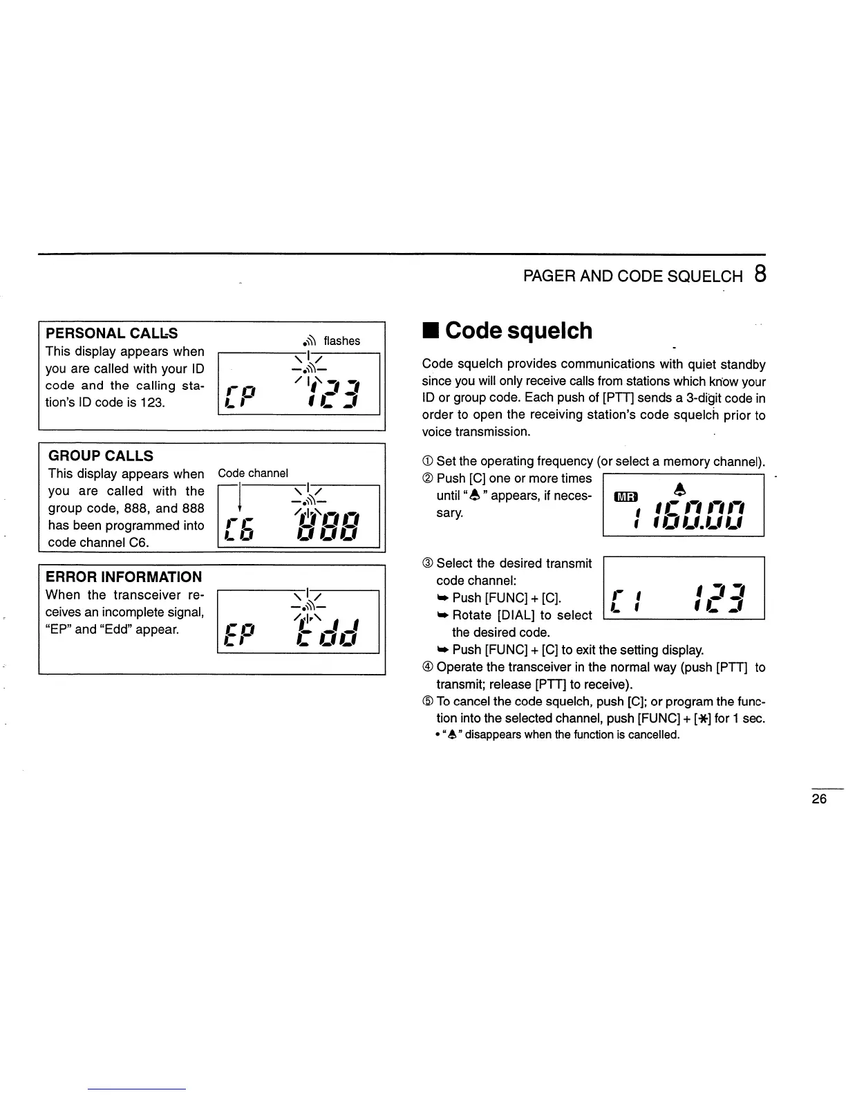 Icom IC-U68 - H;L power selection during channel indication; CH 1 indication at power ON during channel indication; DTMF operation during channel indication; DTMF memory operation during channel indication