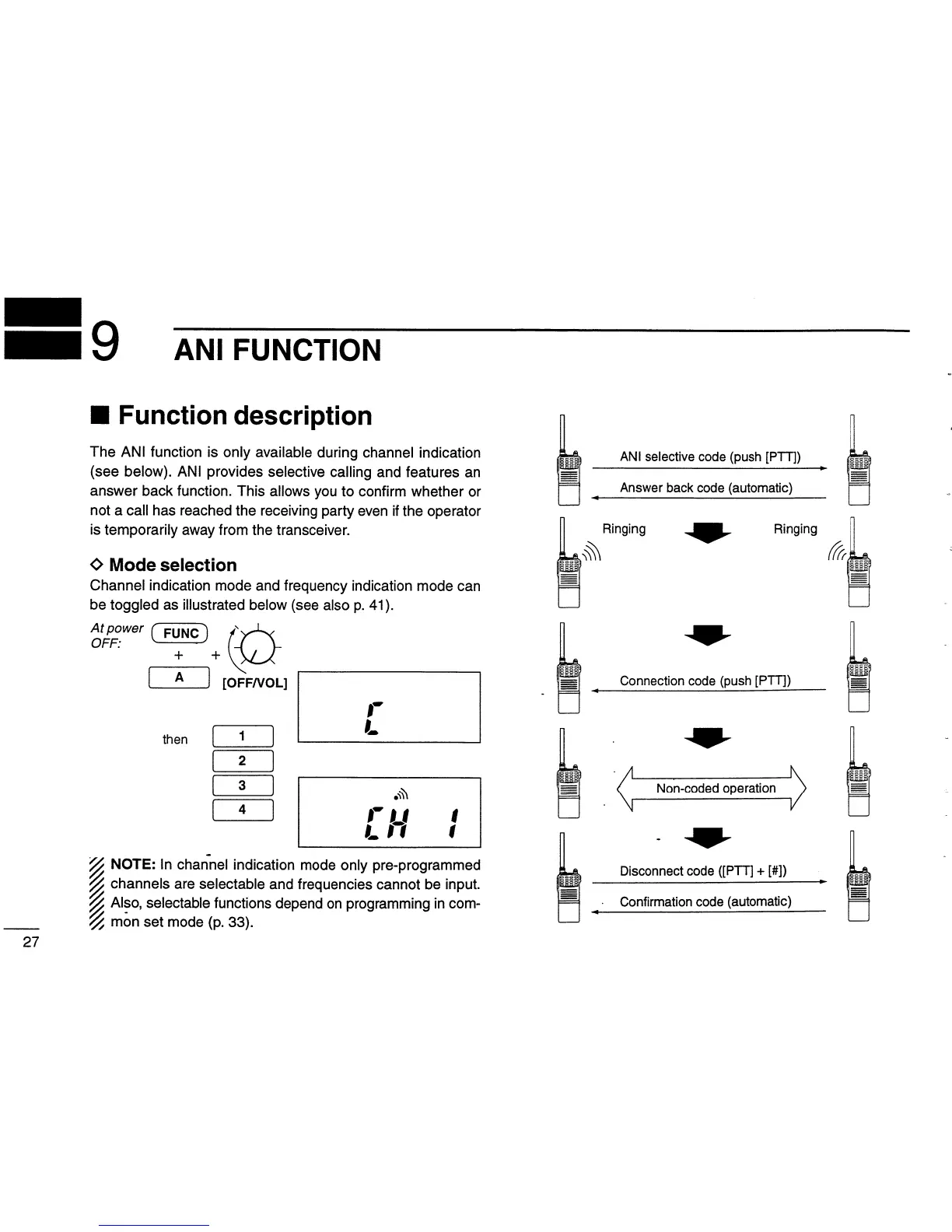 Icom IC-U68 - Confirmation beeps; Monitor function; Noise mute function; Pager code memory overwrite during channel indication