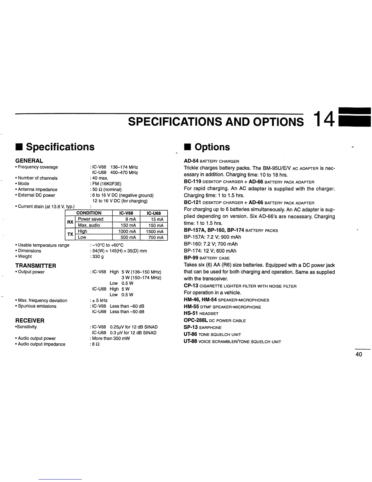 Icom IC-U68 - Specifications; Options