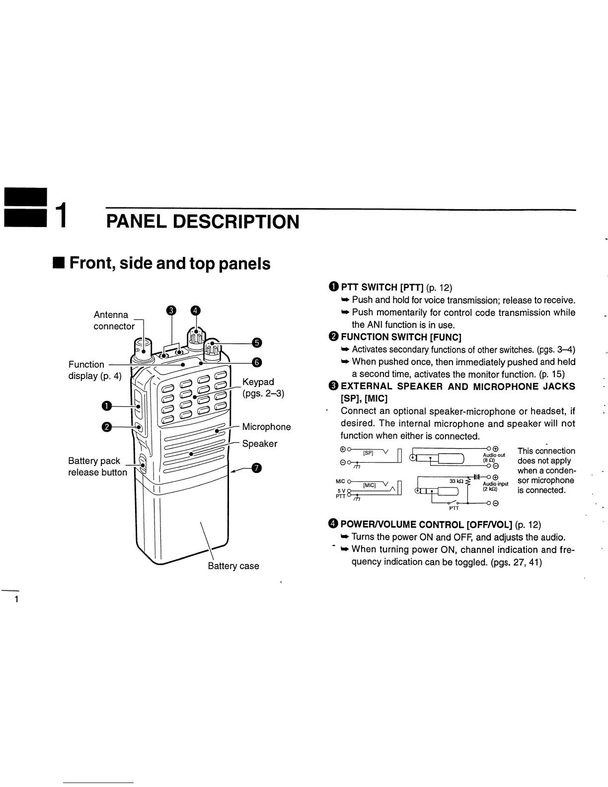 Icom IC-V68 - Panel Description; Front, Side, and Top Panel Components