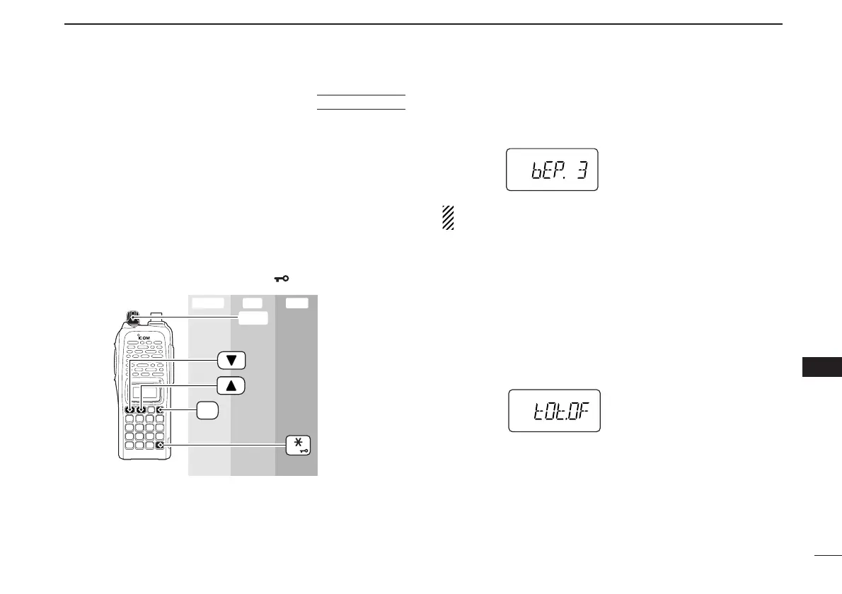 Turns key-touch beep emission ON (Beep level 1 to 3) or