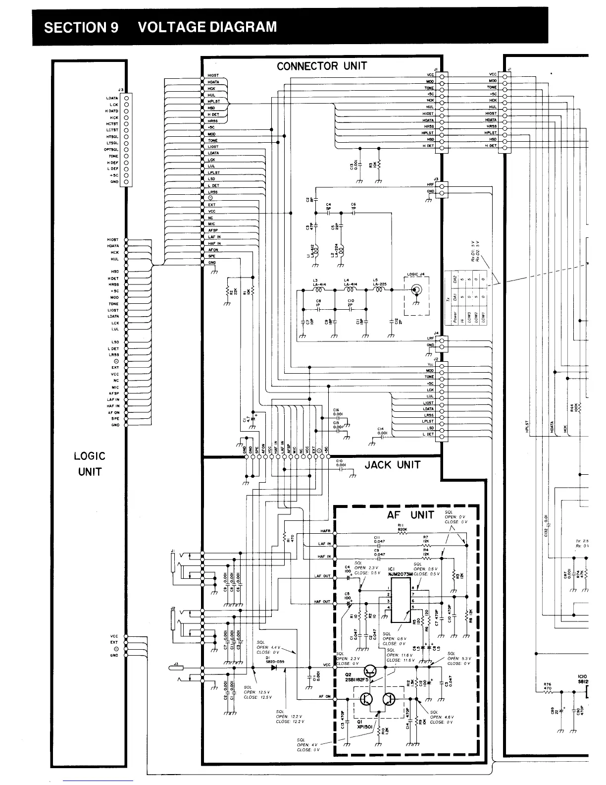 Icom IC-W2A - Voltage Diagrams; Interface Unit Voltage Diagrams
