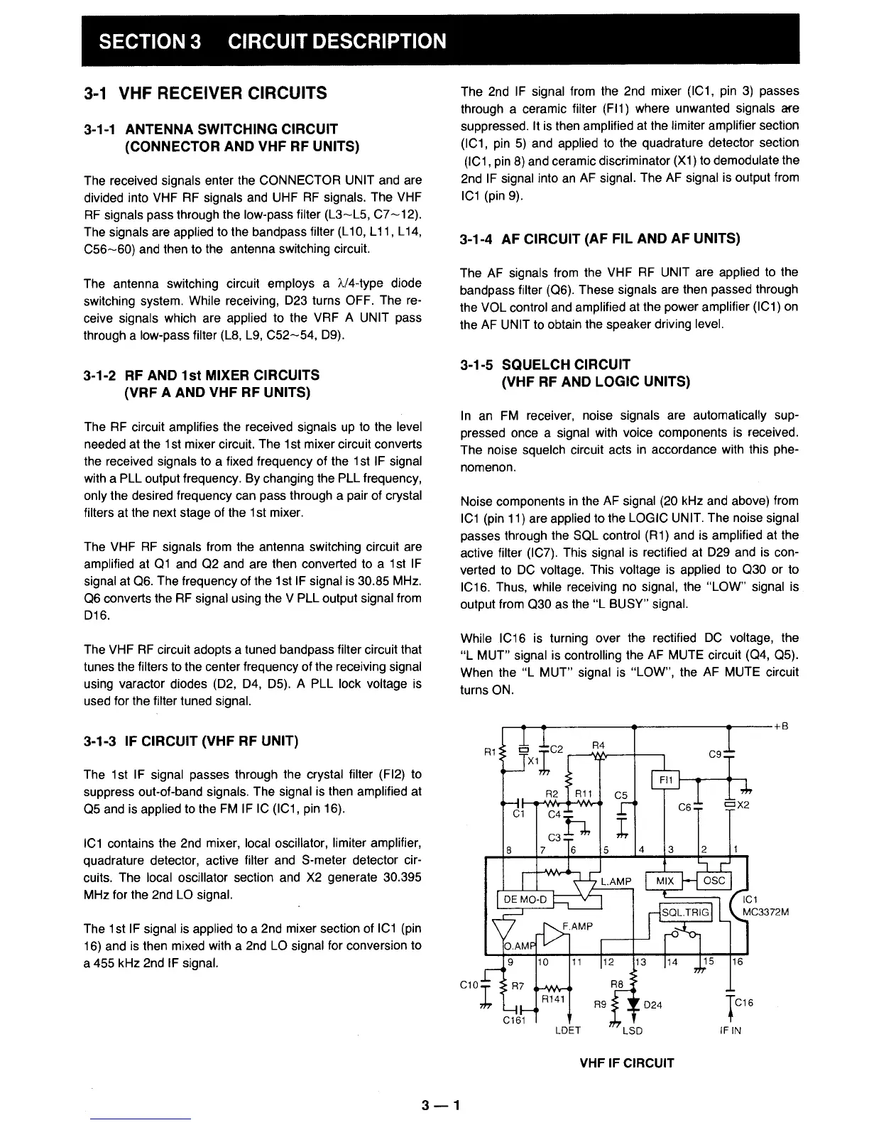 Icom IC-W2A - Circuit Description Details; VHF Receiver Circuits