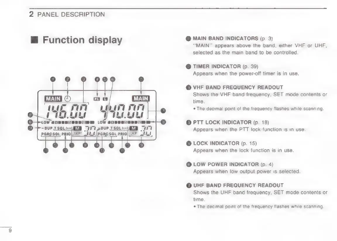 Icom IC-W2E - Function Display Indicators