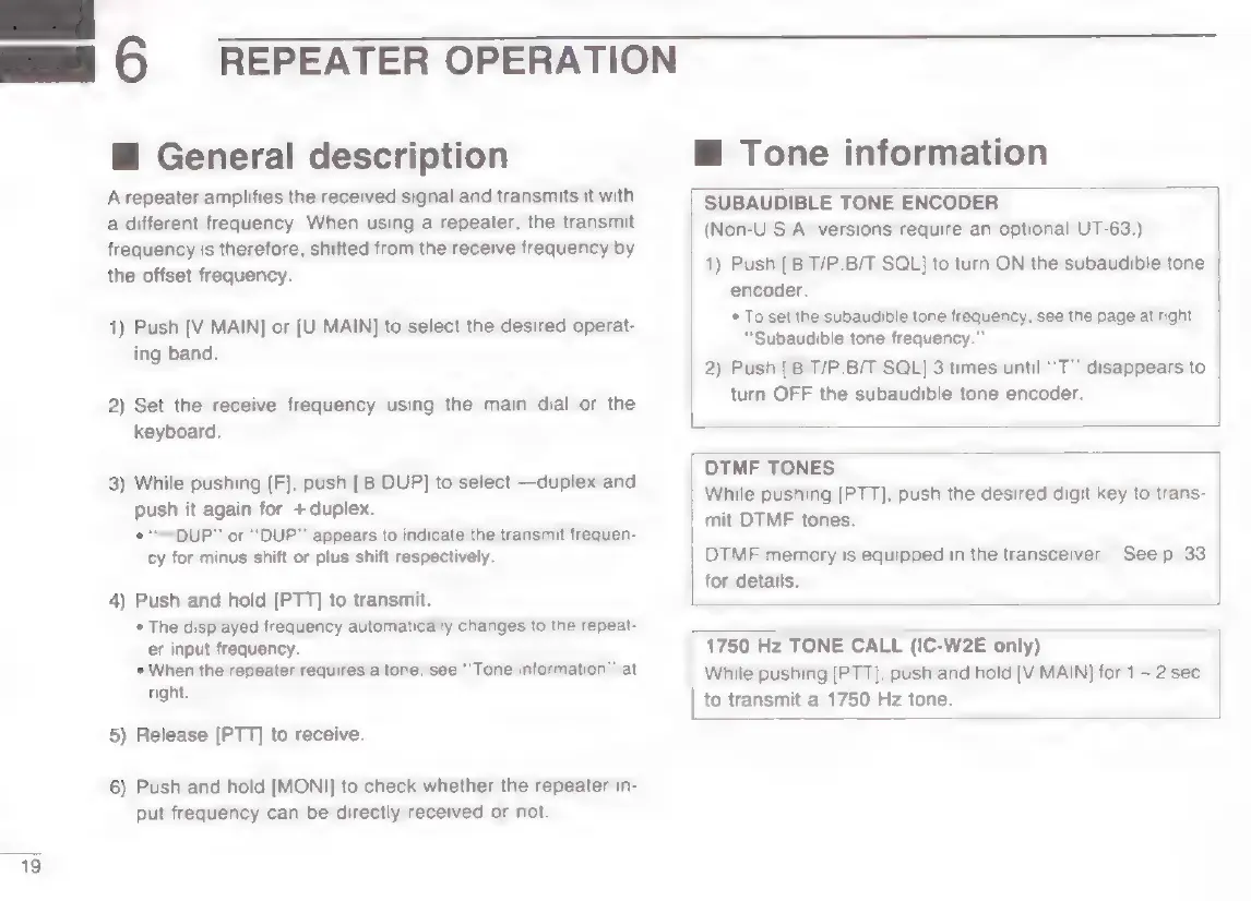 Icom IC-W2E - Repeater Operation Guide; General Repeater Use Procedures; Tone Information and Frequency Settings