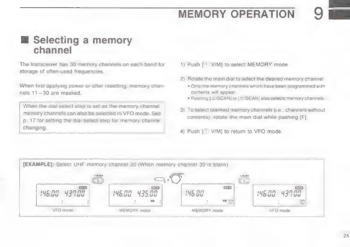 Icom IC-W2E - Memory Operation Procedures; Memory Channel Selection