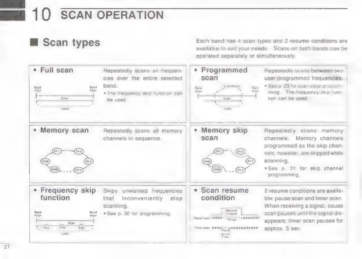 Icom IC-W2E - Scan Operation Guide; Scan Types and Resume Conditions