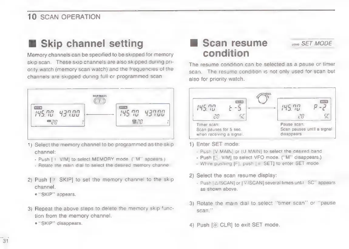 Icom IC-W2E - Skip Channel and Resume Condition Settings