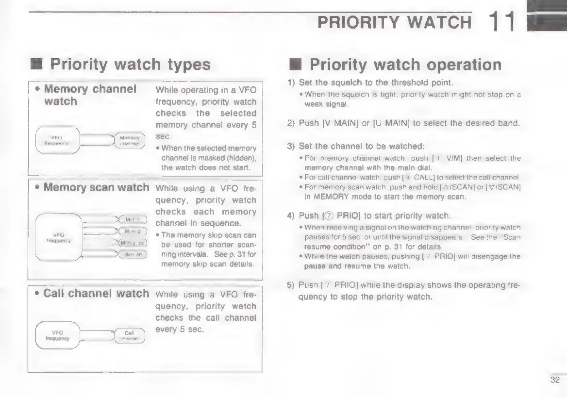 Icom IC-W2E - Priority Watch Operations; Priority Watch Types and Operation