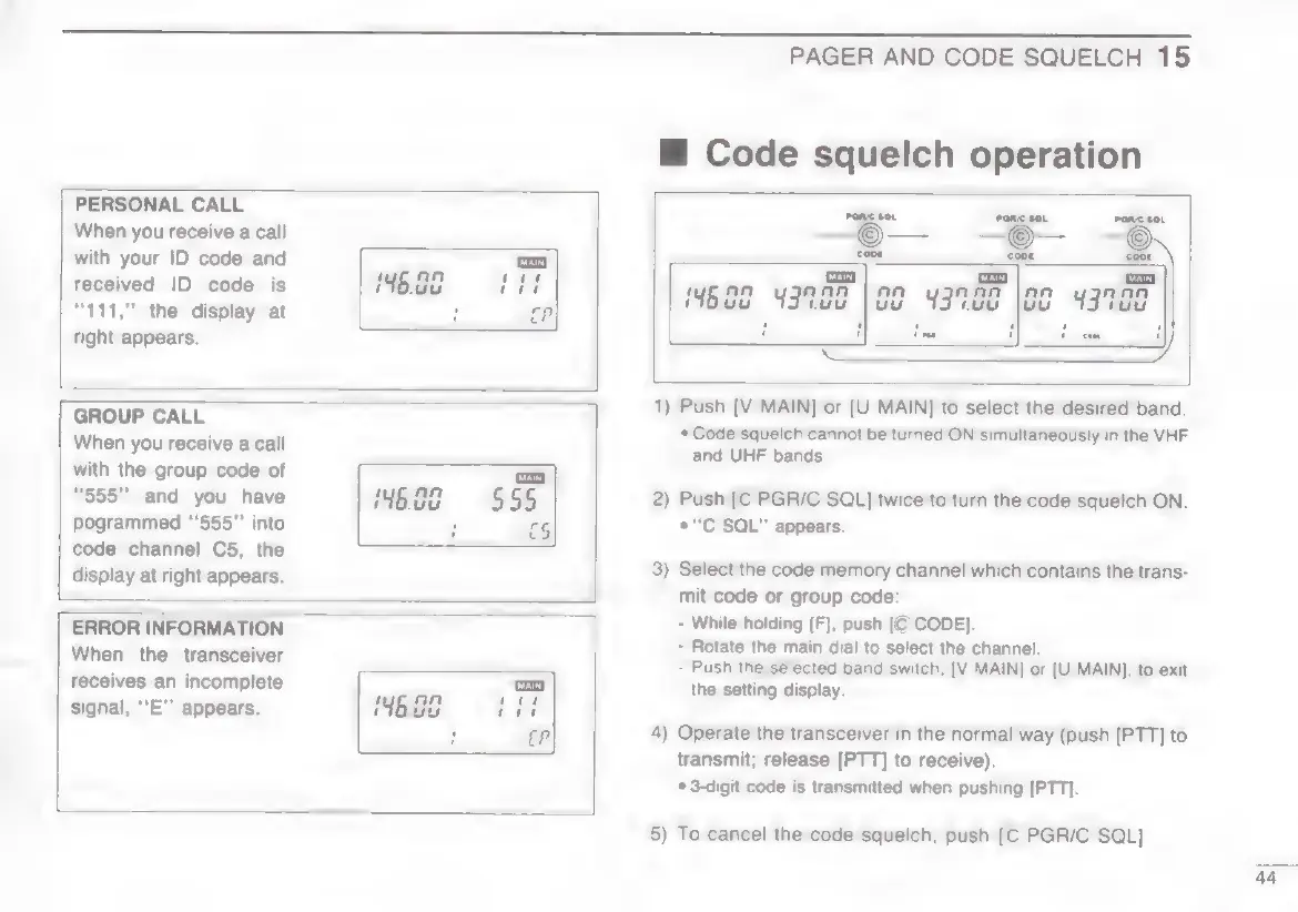 Icom IC-W2E - Code Squelch Operation
