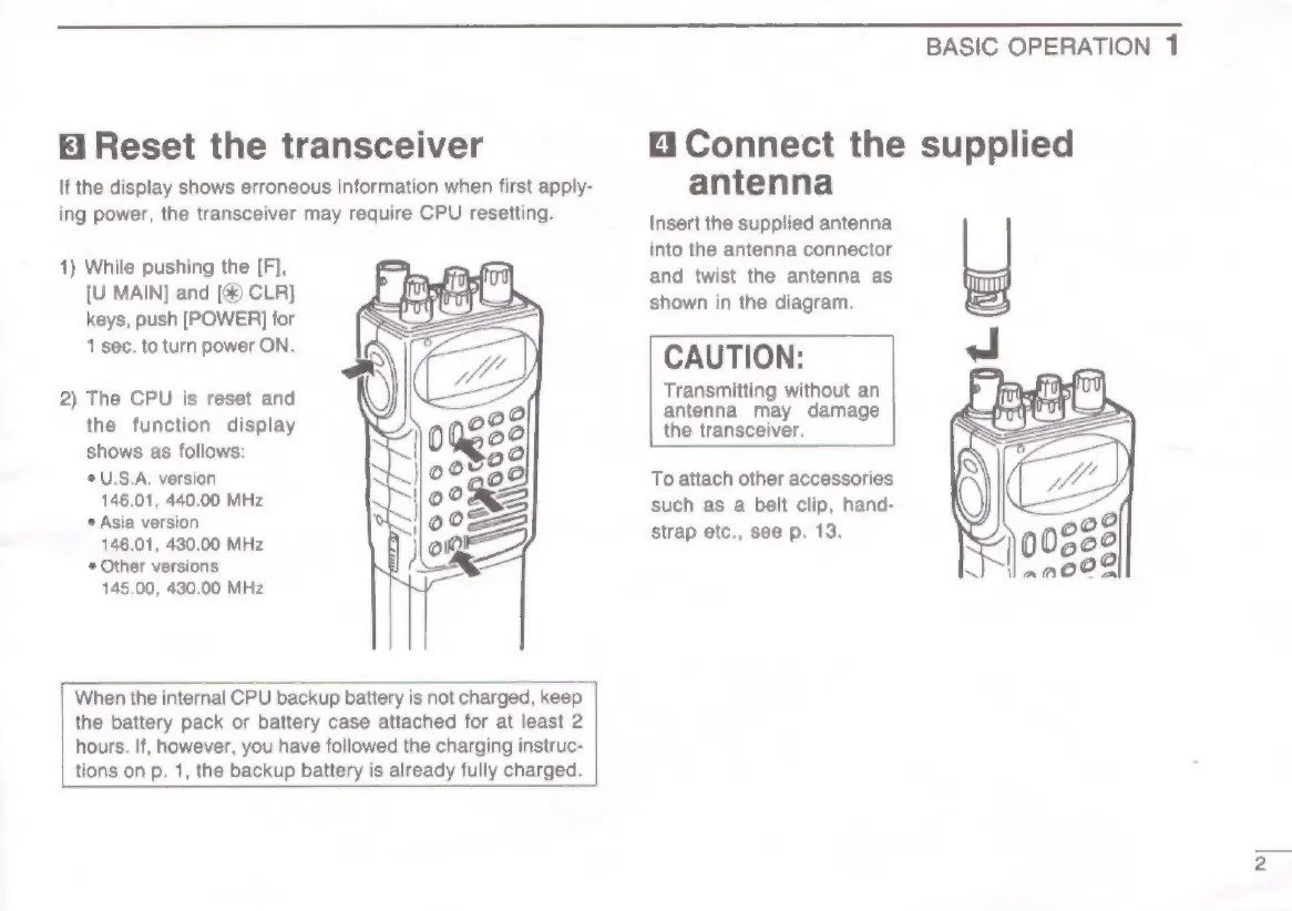 Icom IC-W2E - Antenna, Reset, and Audio Setup