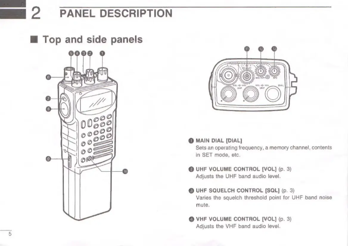 Icom IC-W2E - Transceiver Panel Description; Top and Side Panel Controls