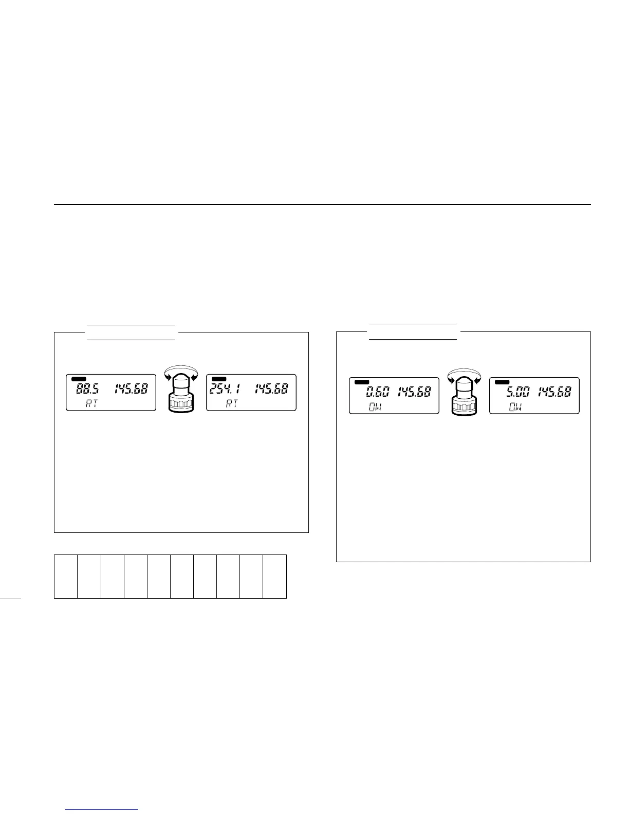 (H/L)(SET)J] or [(TONE)K] several times until “RT”