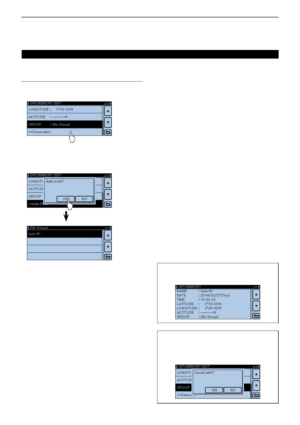 • Writes the entered content into the GPS memory.