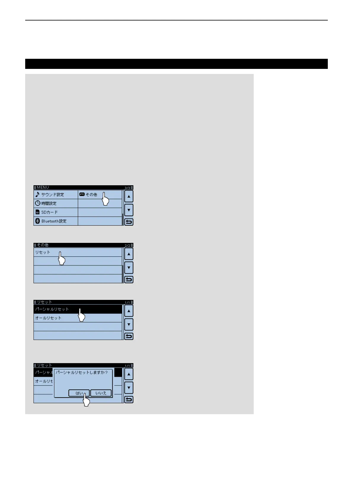 - The transceiver displays “PARTIAL RESET,” then the partial reset is completed.