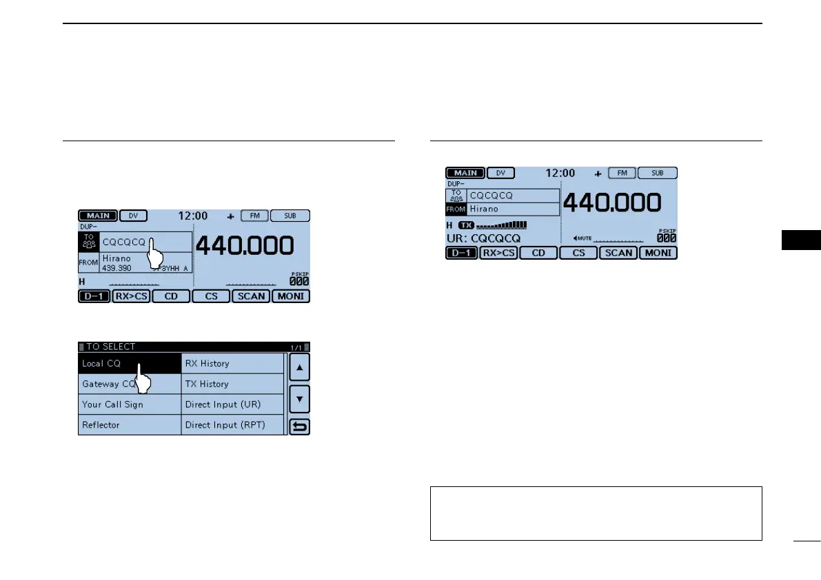• Returns to the DR screen, and “CQCQCQ” is displayed in “TO.”
