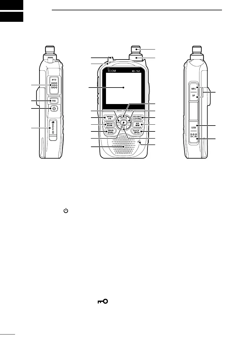 z Hold down for 1 second to turn the transceiver ON or OFF. (p. 7)