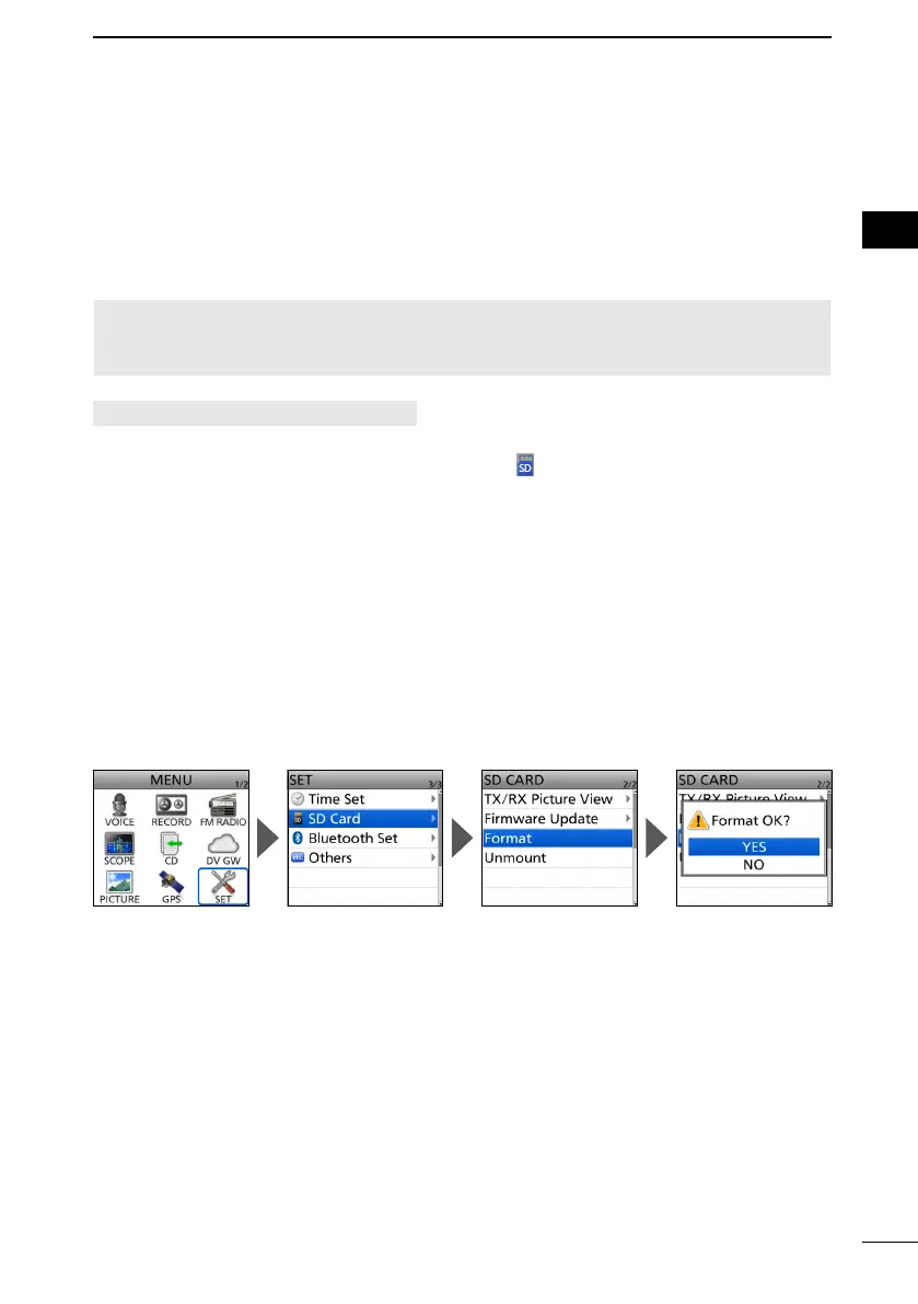 Saving settings onto a card enables you to easily restore the transceiver to its previous