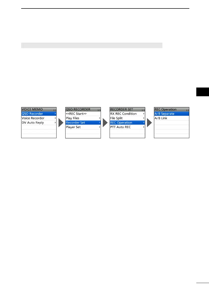 [MENU] > RECORD > QSO Recorder > Recorder Set > REC Operation