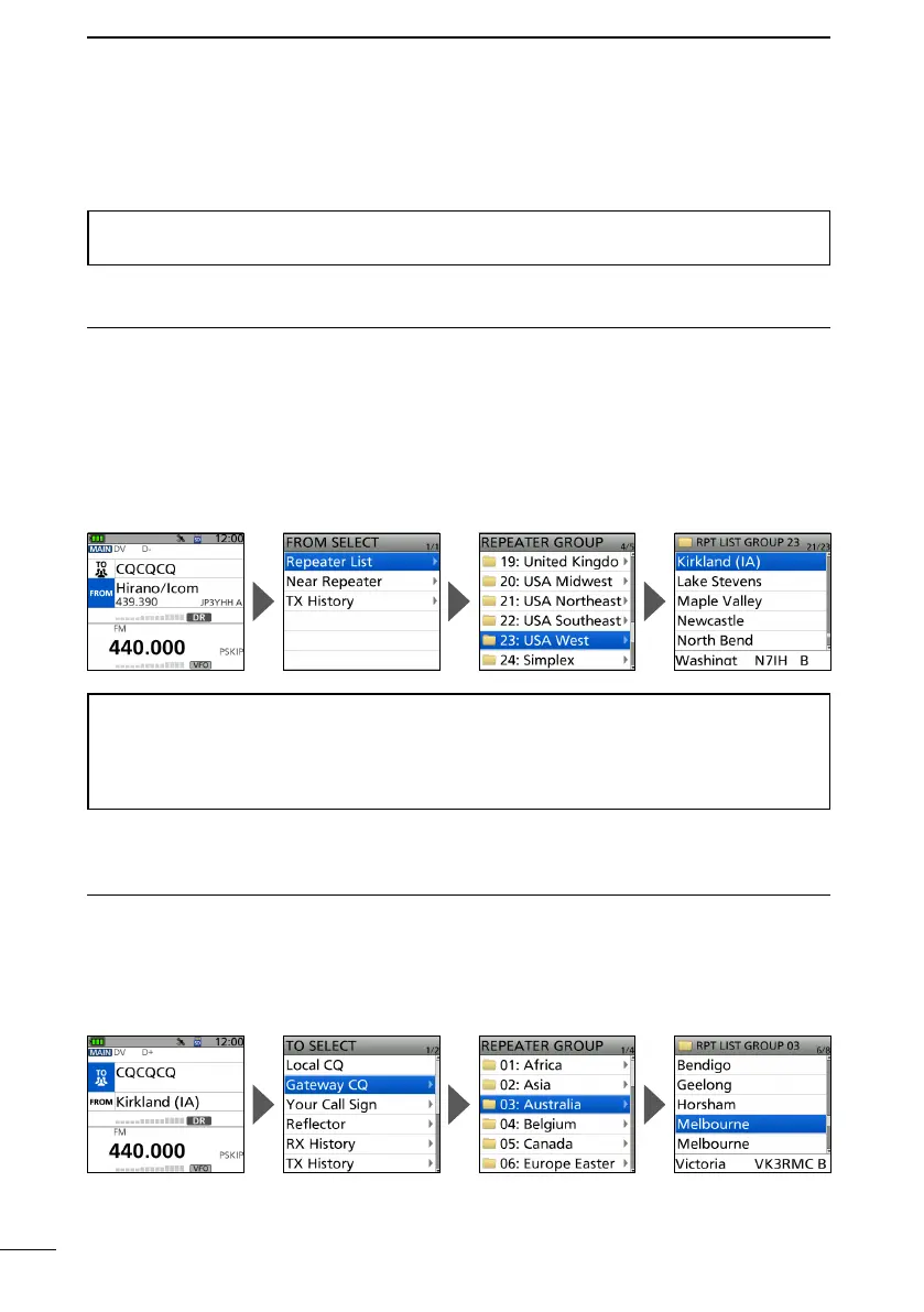 • Returns to the DR screen, and the selected repeater name is displayed in “FROM.”