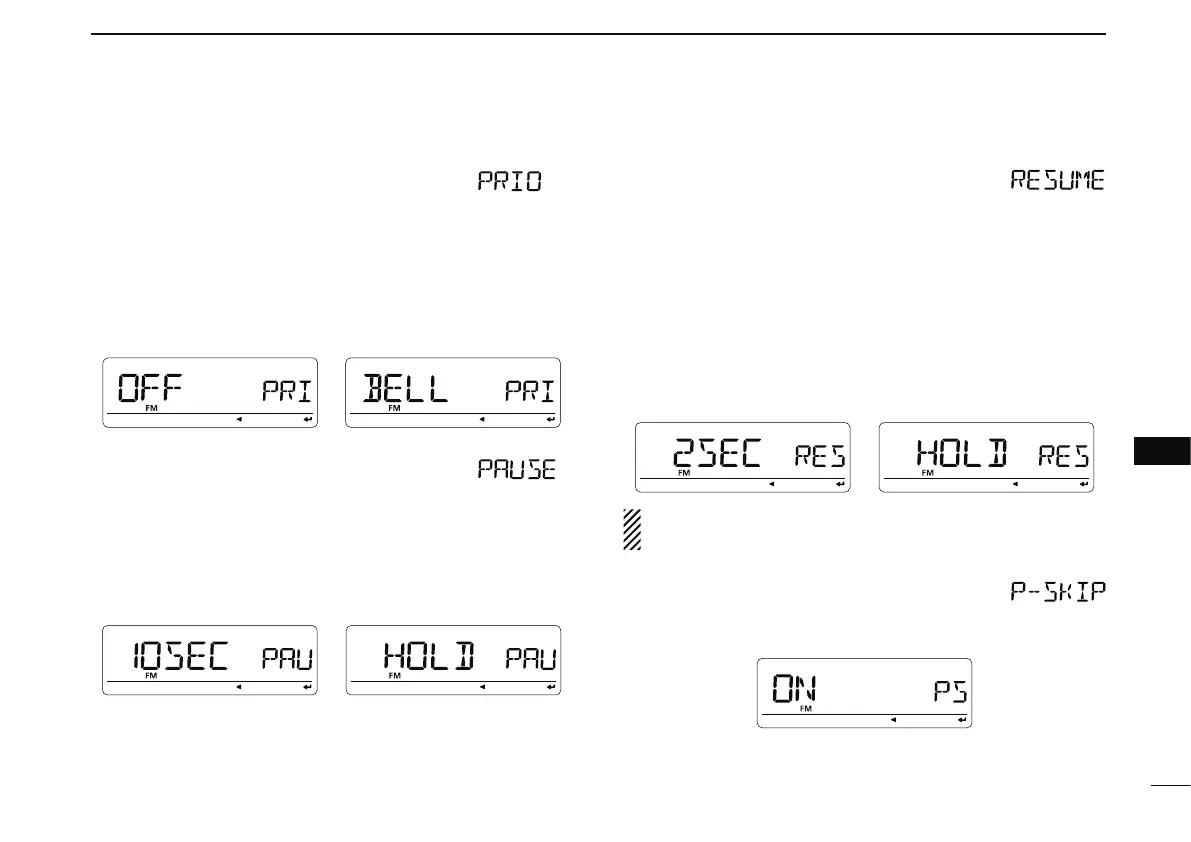• 1–5SEC : Scan pauses 1–5 sec. after a received signal