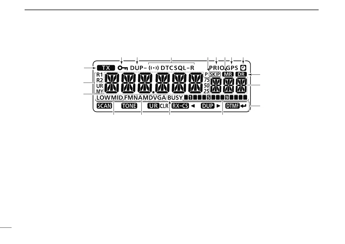 Shows the operating frequency, set mode contents, etc.