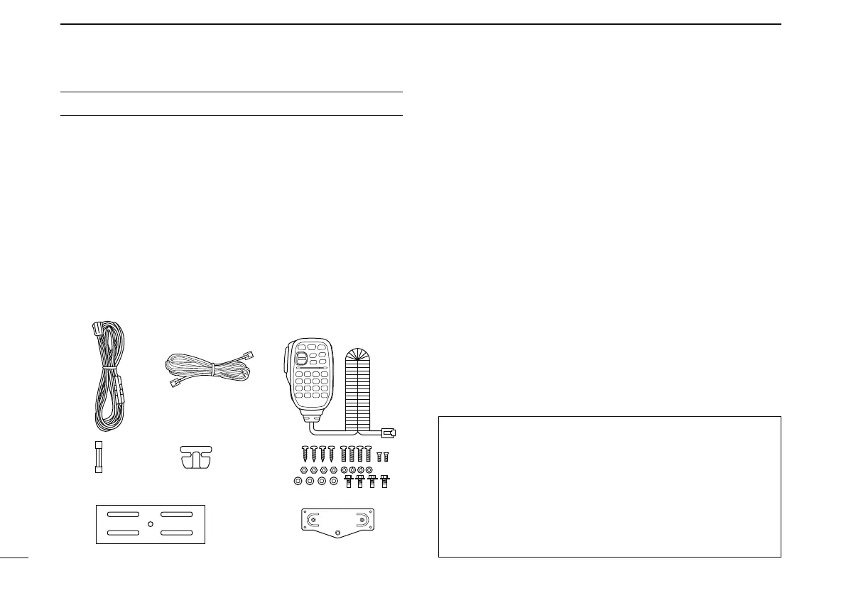 The following accessories are supplied with the transceiver.