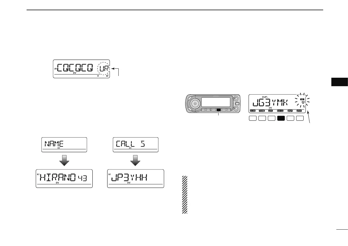 • Either “UR,” “R1” or “R2” call sign is displayed.