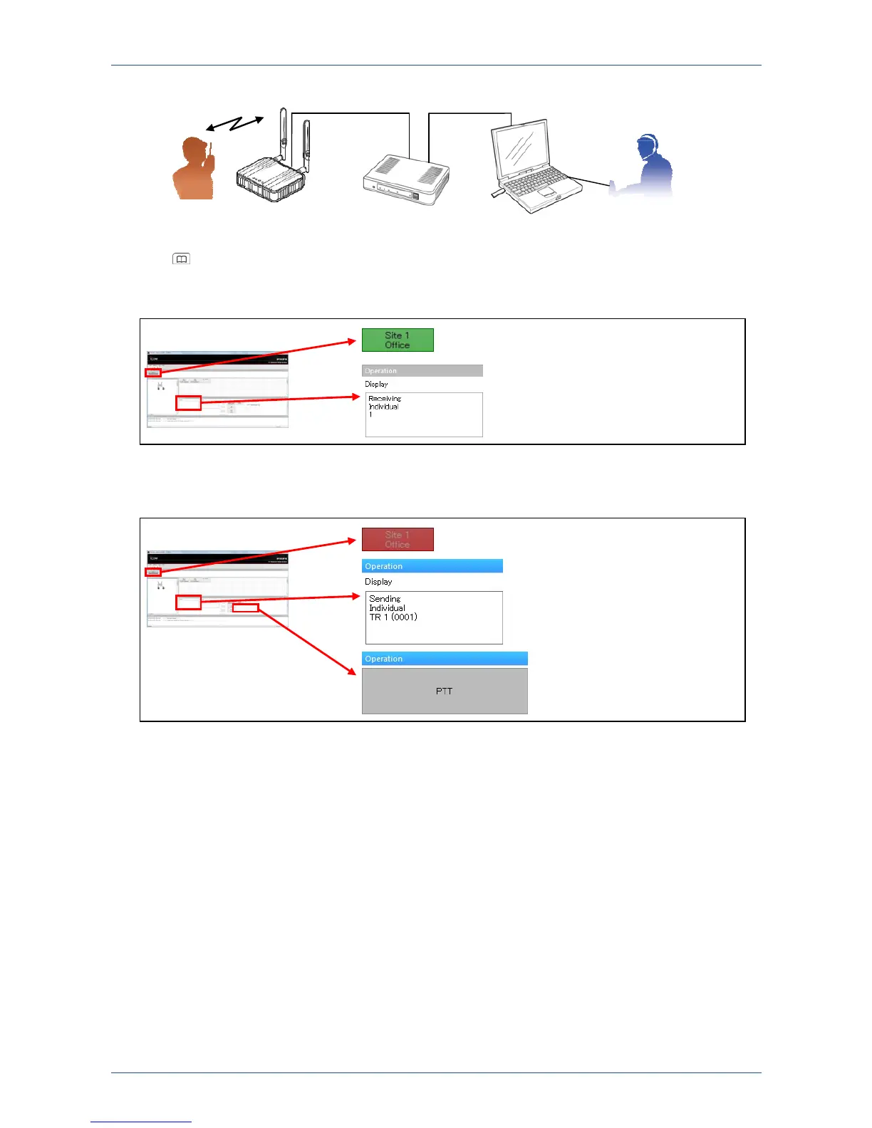 (3) While clicking and holding the IP100FS’s [PTT], speak into the microphone at a normal voice level.