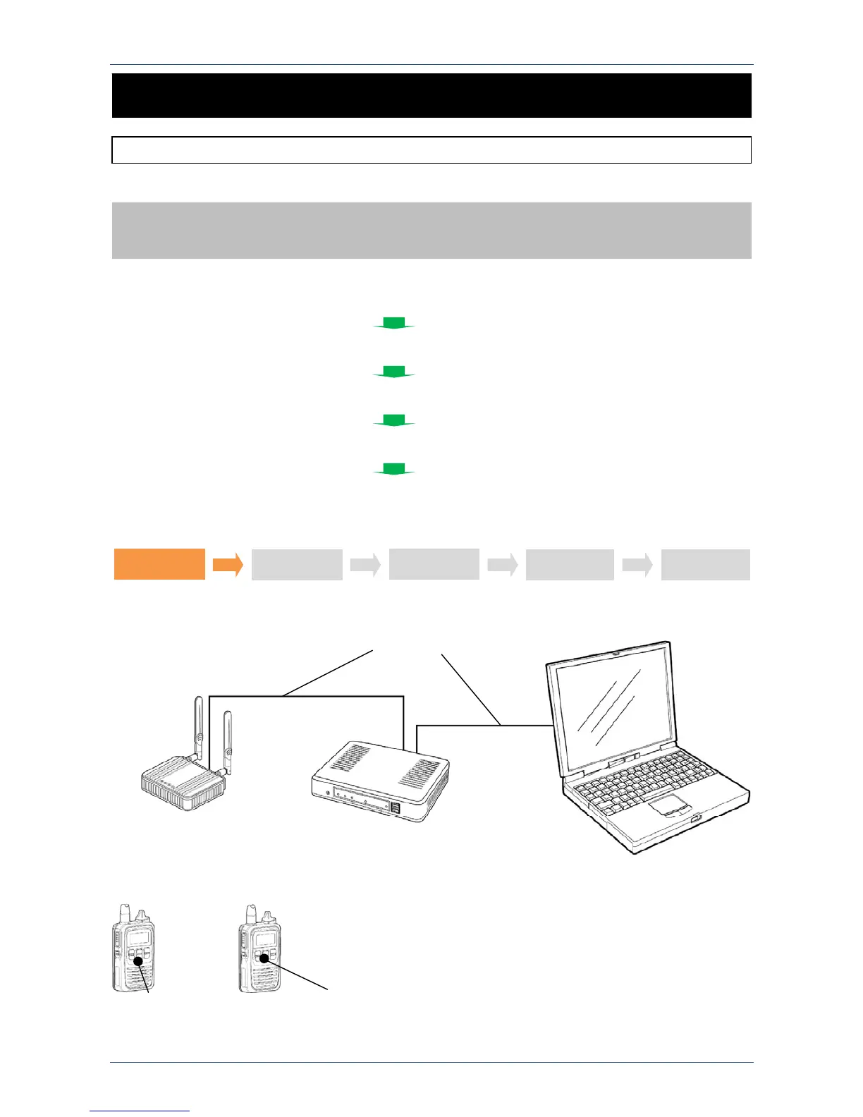 Set an access point, PC, IP1000C and IP100H using the following steps.