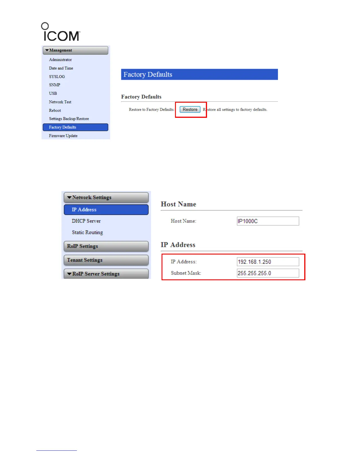 6. Change the IP address for the IP1000C to match the Company’s Network IP Scheme. This