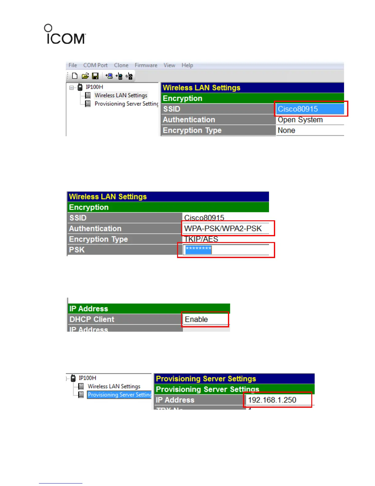 7. Click Provisioning Server Settings and enter your IP1000C IP address in IP address field