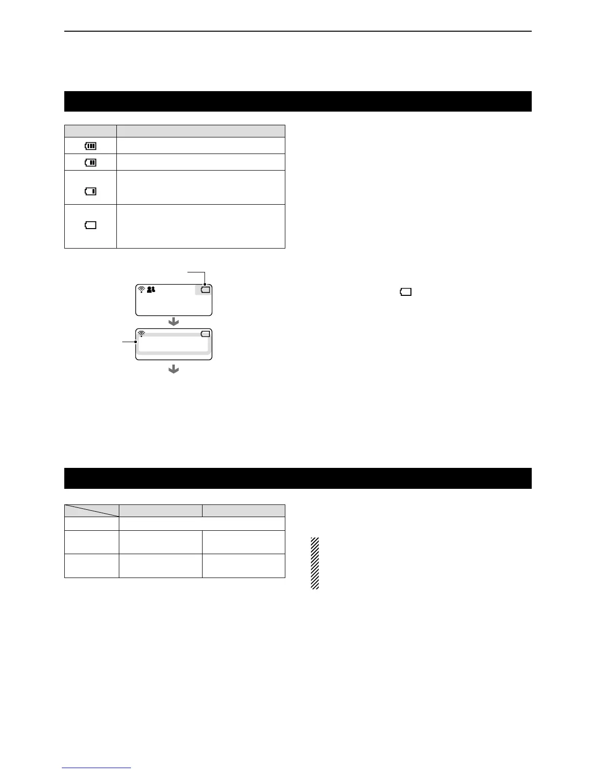 tery status indicator, “ ,” starts blinking, and warning