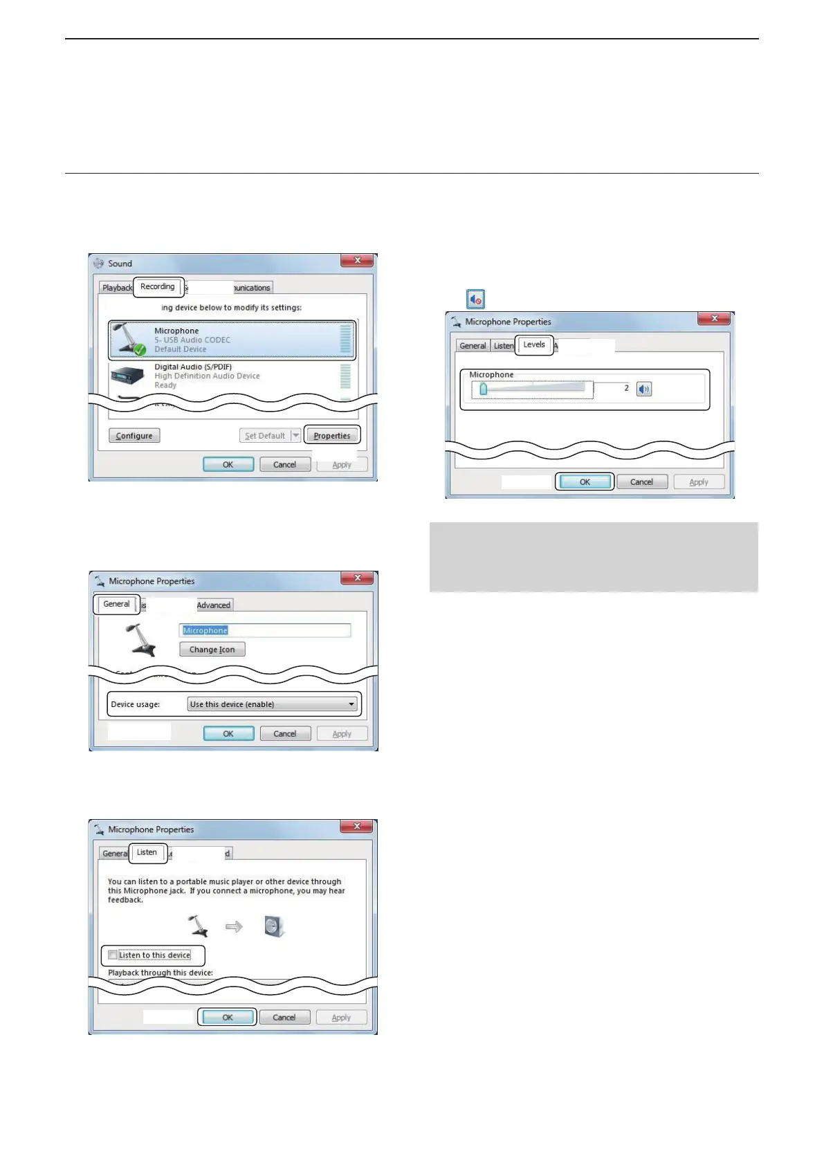 7. The “Microphone Properties” screen appears,
