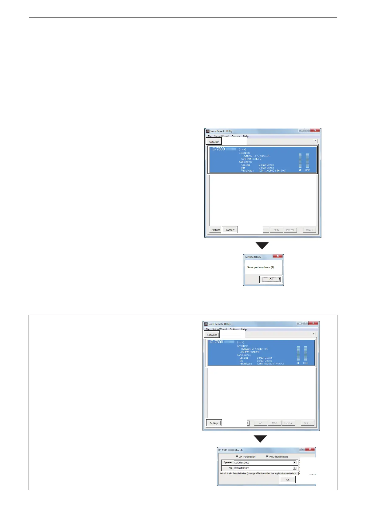 L To control the radio, connect to it using a control software.