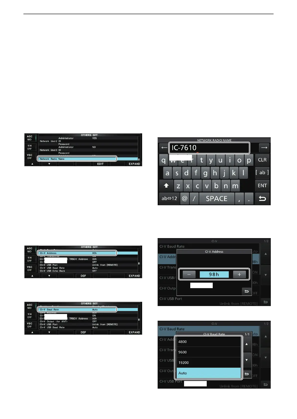 7. Push [▲](F-1) or [▼](F-2) to select “CI-V
