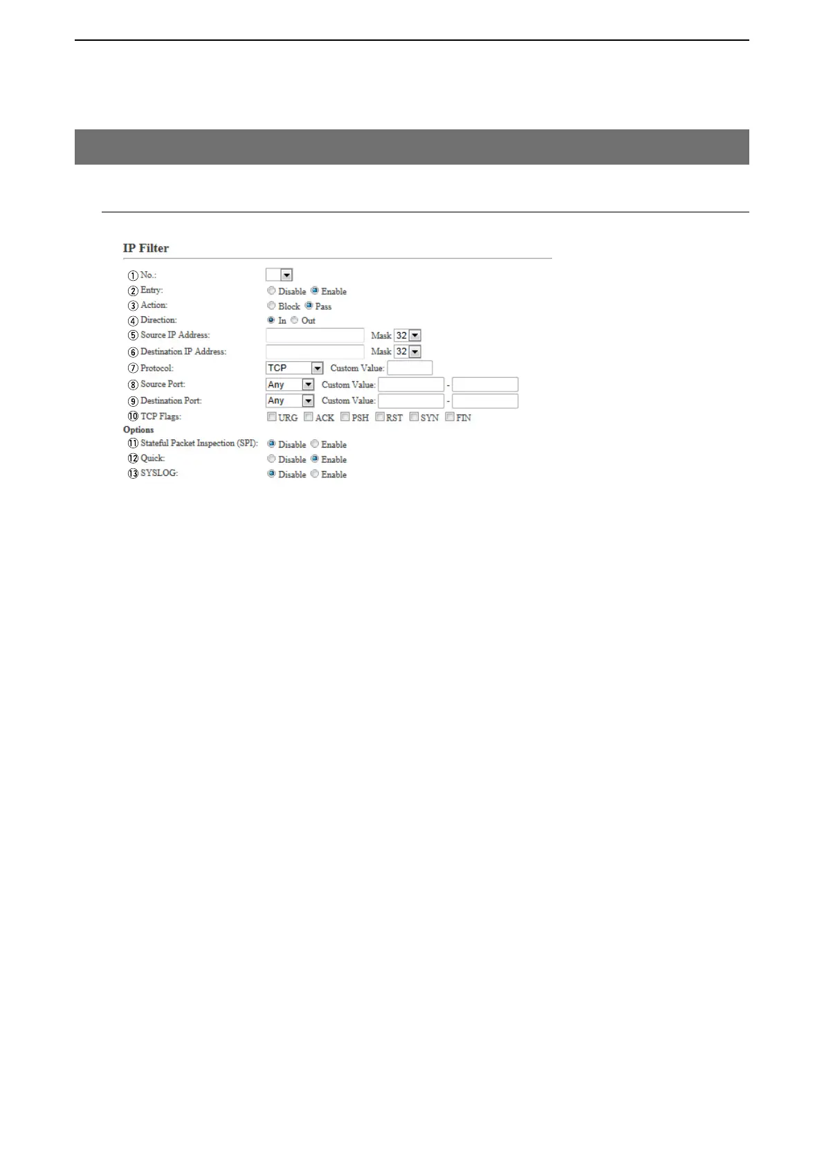 y Destination IP Address … Enter the destination IP Address (and mask) to filter.